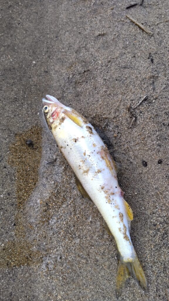 稚鮎は他の小魚と違って流れにめっぽう強く、弱ってフラフラと流されることはあまりありません。