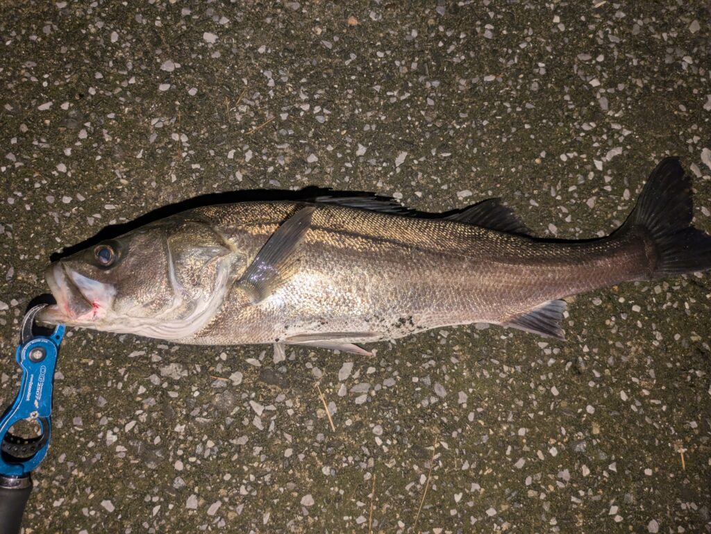 - 状況:23:46〜01:36釣行。大潮(下げ)、風3m、濁りなし、流れ強い。水温12.6℃。ベイトはイワシ・イナッコ。